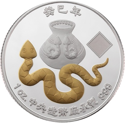 Опис: Стокрокова змія. Контури Тайваню та гори Ю, найвищої гори Тайваню, відображаються та видно в ромбічному прихованому зображенні, коли монету трохи повертають відповідно вправо та вліво.