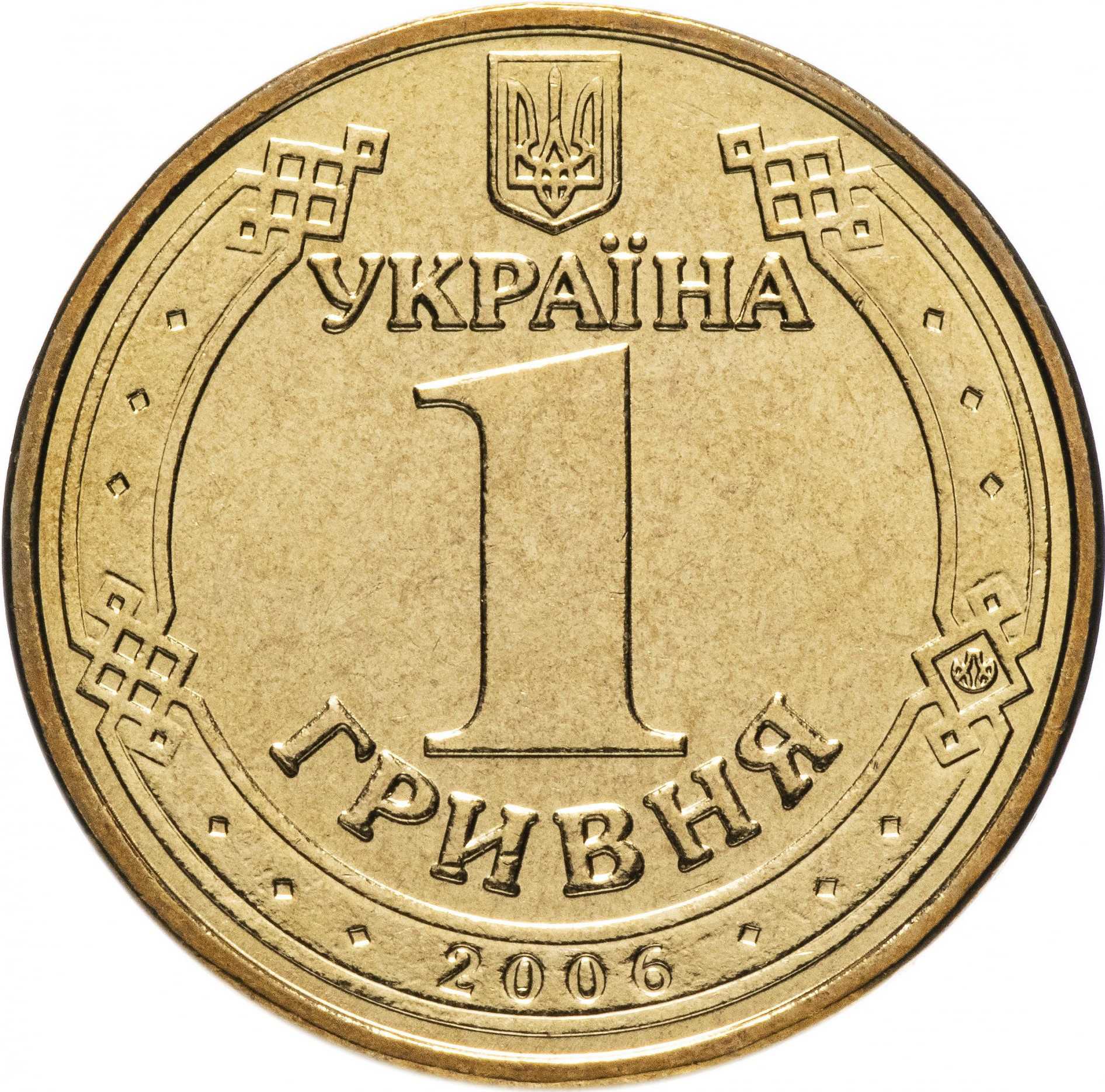 Гурт: Гладка з вибитими літерами. (ОДНА · ГРИВНЯ · 2006 ·)