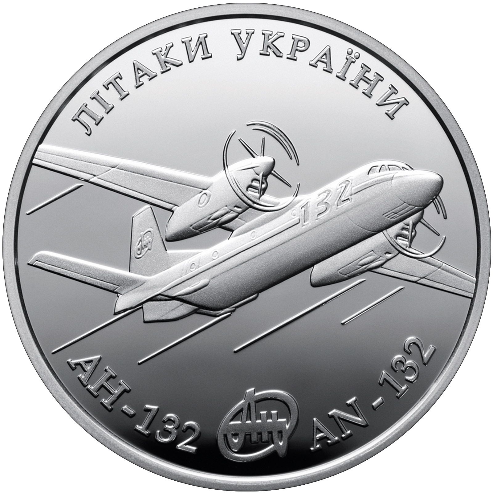 Опис: У центрі, на гладкому тлі, зображено літак АН-132 та наступні написи: ЛІТАКИ УКРАЇНИ (українські літаки) (вгорі) та АН-132, AN-132 (внизу), між якими розміщено логотип AN.