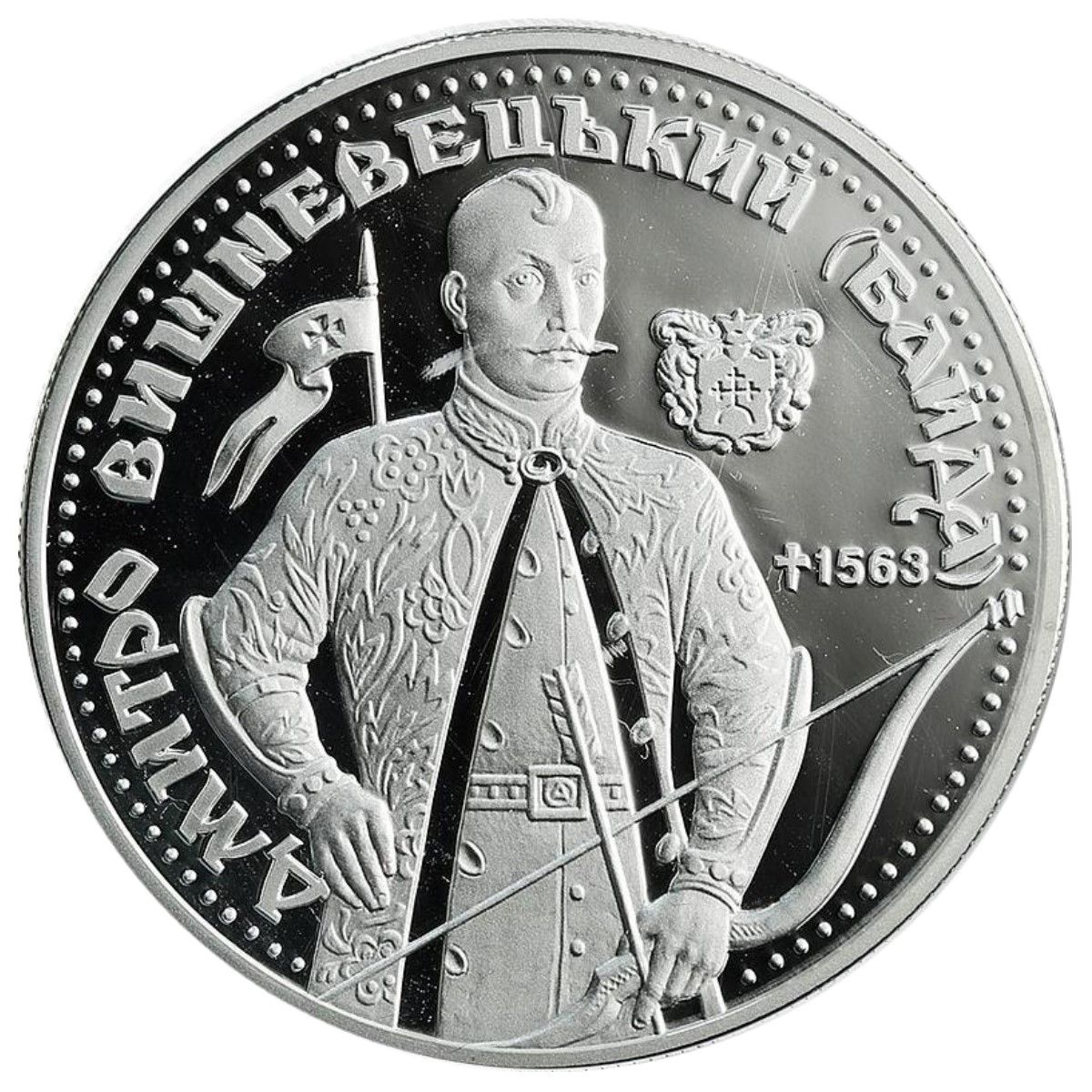 Опис: На монеті зображений Вишневецький з луком у руці; праворуч викарбувано його родинний герб та дату смерті — 1563 рік. У круговому написі зазначено: ДМИТРО ВИШНЕВЕЦЬКИЙ (БАЙДА).