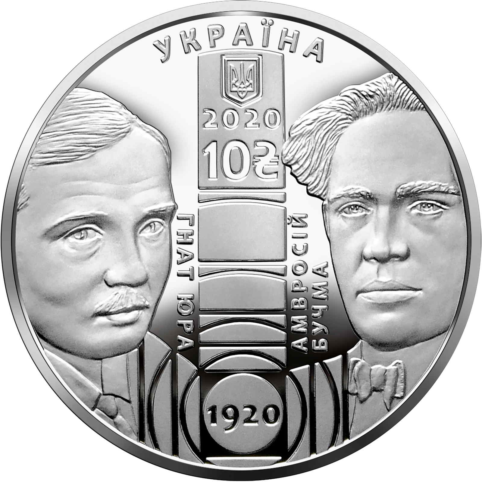 Опис: На монеті зображено малий герб України, над яким розміщено напівкруглий напис «УКРАЇНА», під гербом — рік випуску монети — 2020 та номінал 10 ₴; на гладкому тлі ліворуч зображено портрет Гната Юри, праворуч від якого розміщено вертикальний напис «ГНАТ ЮРА»; праворуч – портрет Амвросія Бучми, ліворуч від якого – вертикальний напис «АМВРОСІЙ/БУЧМА». Юра та Бучма були серед засновників театру. Нижче – напис «1920», рік заснування театру.