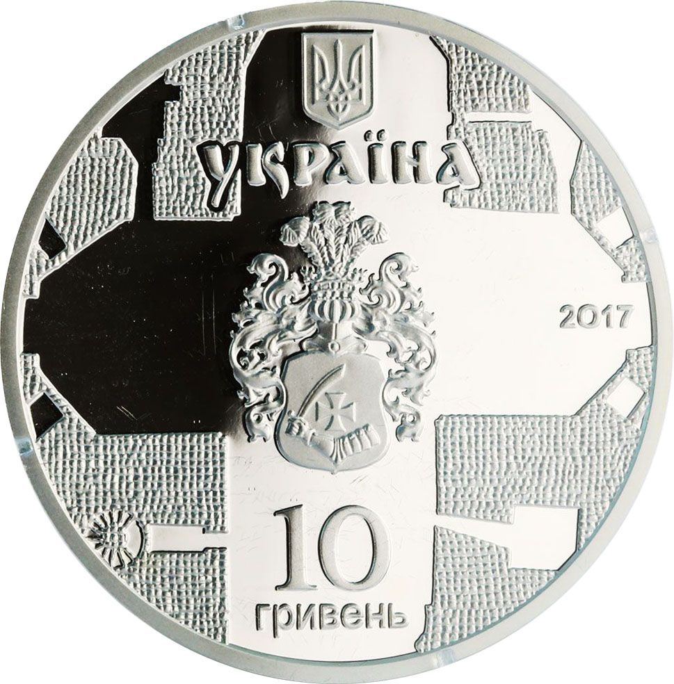 Опис: Зверху зображено малий герб України, під яким розміщено напис «УКРАЇНА»; у центрі, на гладкому тлі хрестоподібного планування церкви, розміщено герб Лизогубів; праворуч — рік випуску 2017; нижче розміщено такі написи: на срібній монеті 10/ГРИВЕНЬ (10/гривень).