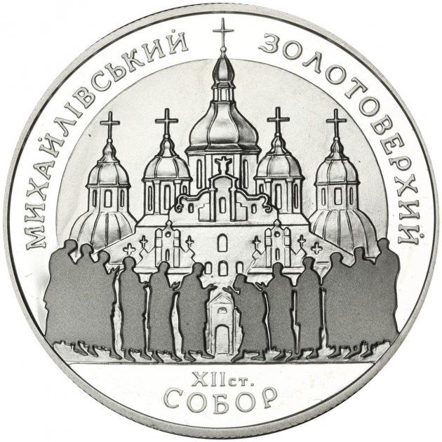 Опис: На тлі зображення Золотоверхого собору Святого Михайла видніються силуети дванадцяти апостолів із символічної сцени причастя з мозаїки «Євхаристія». На монеті є круговий напис: МИХАЙЛІВСЬКИЙ ЗОЛОТОВЕРХИЙ СОБОР XII СТ. (Золотоверхий собор Святого Михайла XII століття).