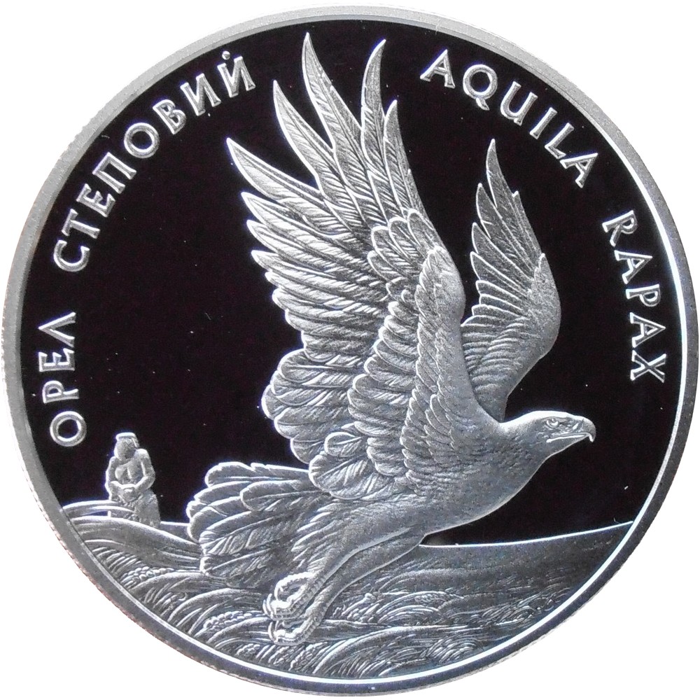 Опис: На монеті зображено орла-степовика в степах Асканії. По колу монети розміщено написи: ОРЕЛ СТЕПОВИЙ та AQUILA RAPAX.