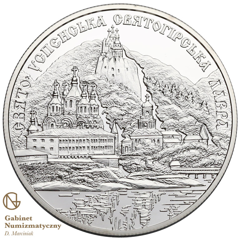 Опис: На монеті зображено старовинний Святогірський Успенський монастир на березі річки, який розташований біля підніжжя крейдяних пагорбів, вкритих густим лісом, а над ним — напівкруглий напис: СВЯТО-УСПЕНСЬКА СВЯТОГІРСЬКА ЛАВРА (Святогірський Успенський монастир).