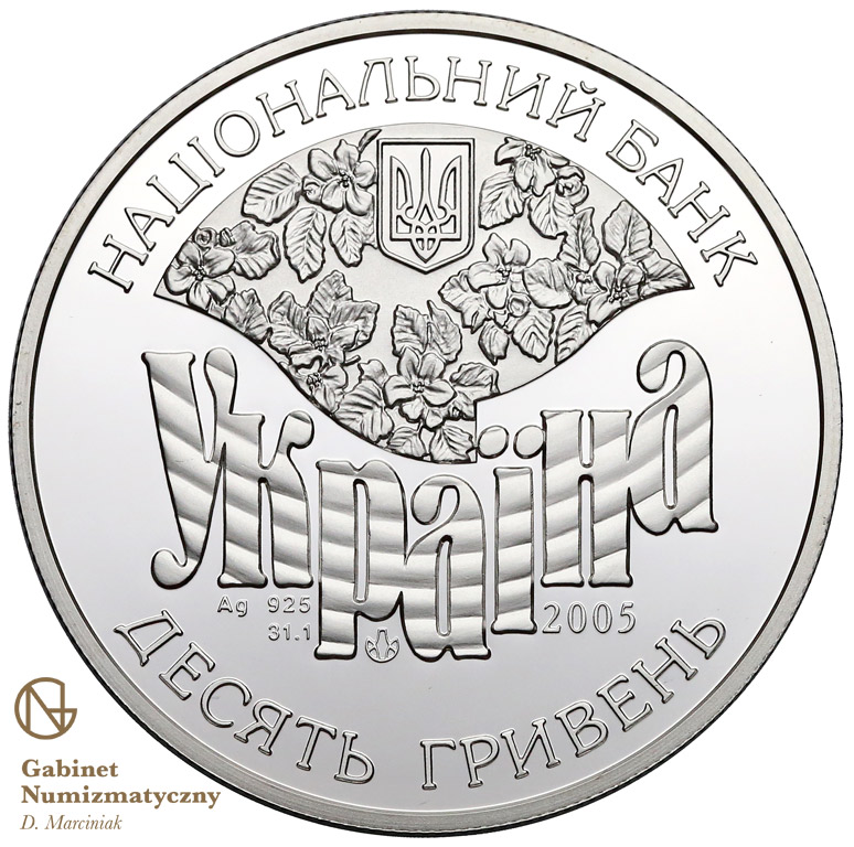 Опис: Є напівкруглий напис: НАЦІОНАЛЬНИЙ БАНК (Національний банк), під яким розміщено невеликий герб України на тлі стилізованого яблуневого цвіту, що символізує родинне дерево; нижче: напис «УКРАЇНА»; Ag 925, позначення металу; 31,1, його вага в пробі (зліва); логотип Монетного двору НБУ; 2005, рік випуску монети (праворуч); нижче — напівкруглий напис: ДЕСЯТЬ ГРИВЕНЬ (10/гривень).