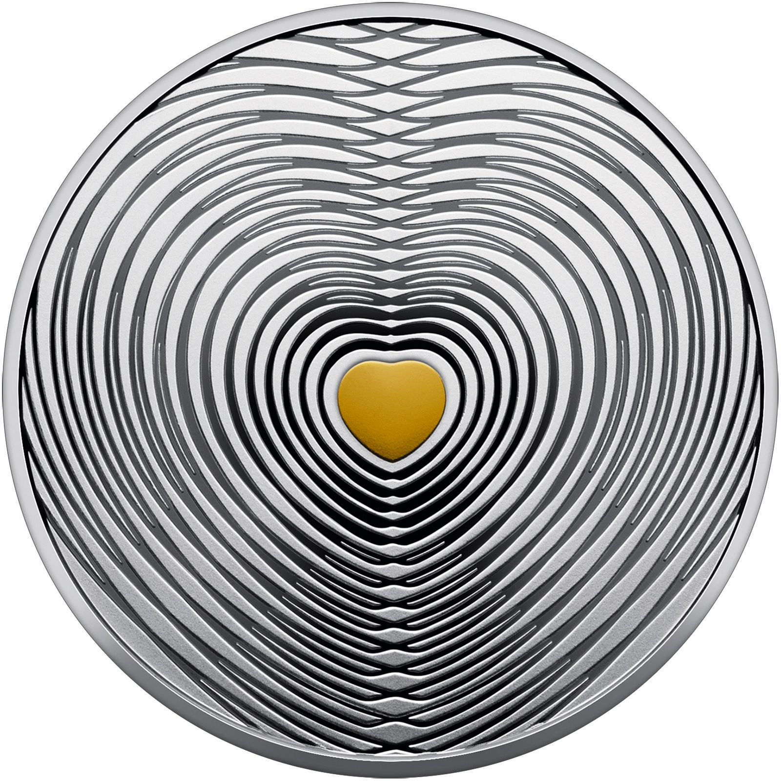 Опис: На монеті зображено рельєфне серце, від якого рівномірно розходяться хвилі. Стилізована композиція є символом щирої та всеосяжної любові, вібрації якої досягають найпотаємніших глибин душі.