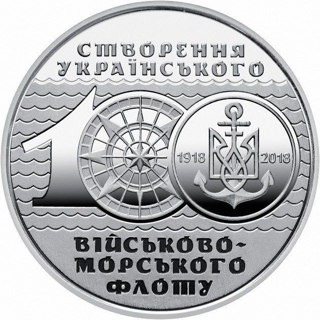 Опис: Зверху, на матовому тлі, зображено малий герб України, ліворуч від якого розташовані вертикальні написи: УКРАЇНА (Україна) і 10 ГРИВЕНЬ (10 гривень) та рік випуску монети – 2018; праворуч, на гладкому тлі, зображені стилізовані зображення прапора, який на той час використовував військово-морський флот України, та військовий корабель; ліворуч від корабля – знак монетного двору ПБНУ «Банкнотно-монетний двір».