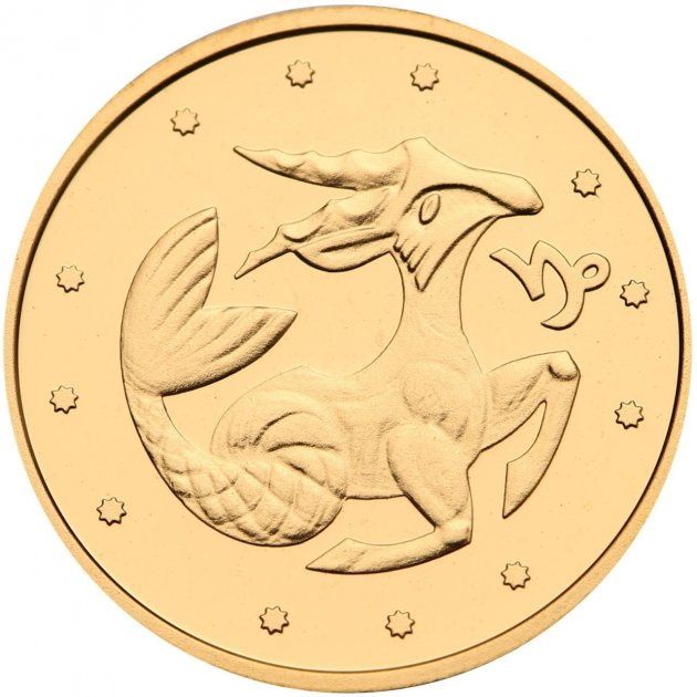 Опис: Зображено стилізоване зображення Козерога з зірками навколо нього, праворуч від якого – символ знака зодіаку.