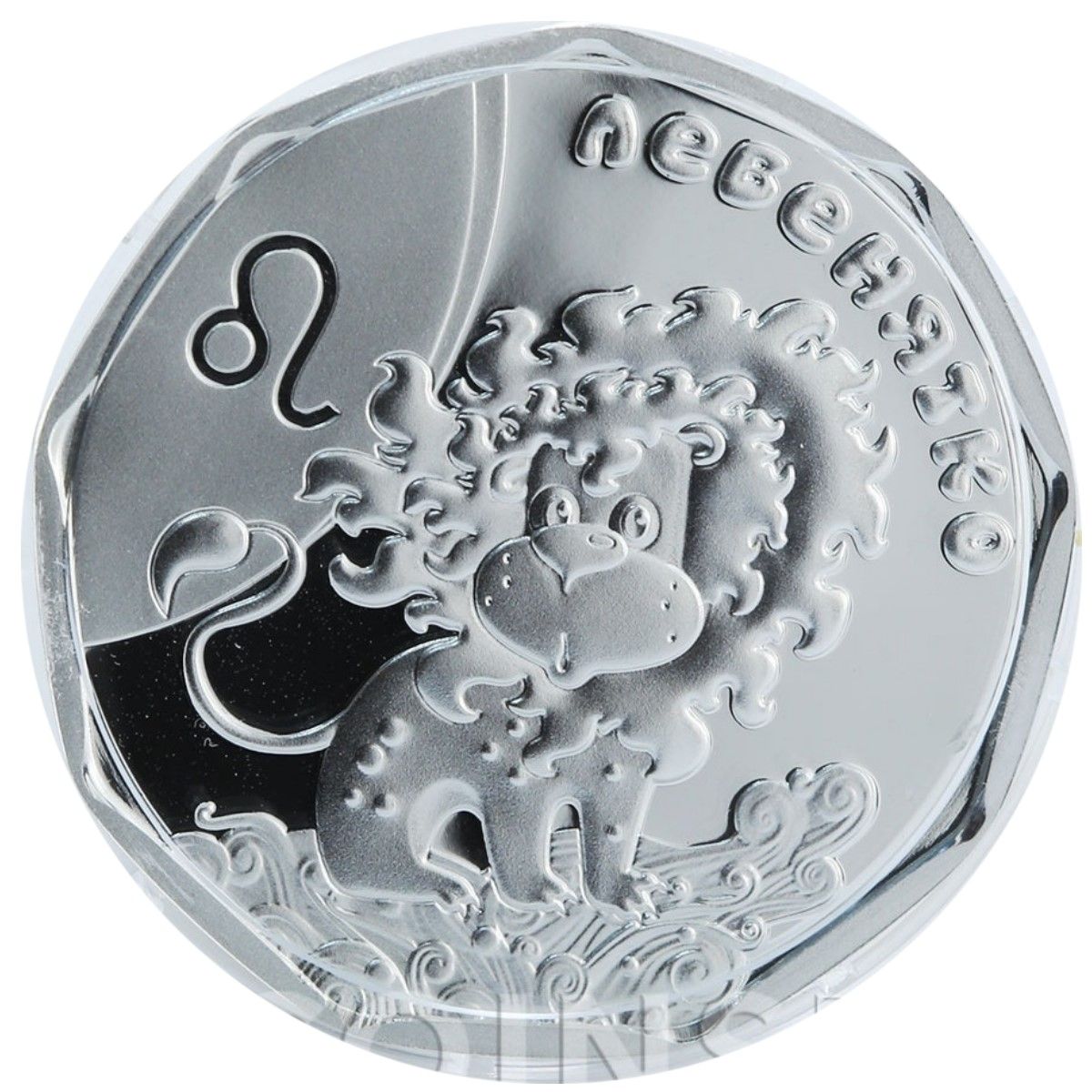 Опис: На реверсі зображено традиційну композицію: ліворуч, на матовій поверхні, — знак Лева; у центрі — маленьке левеня на траві; зверху — напис «ЛЕВЕНЯТКО».