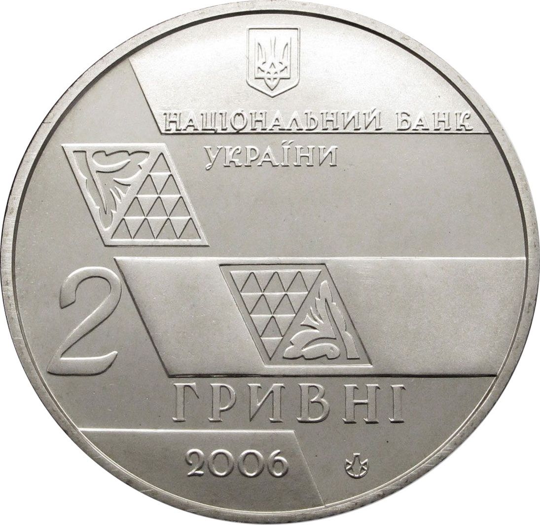 Опис: Зверху — малий герб України, під яким розміщено напис — НАЦІОНАЛЬНИЙ БАНК/ УКРАЇНИ (Національний банк України), елементи стилізованого орнаменту зображено по діагоналі, ліворуч — номінал монети: 2 ГРИВНІ/ 2006 (2 гривні/2006). На монеті також зображено логотип Монетного двору Національного банку України.
