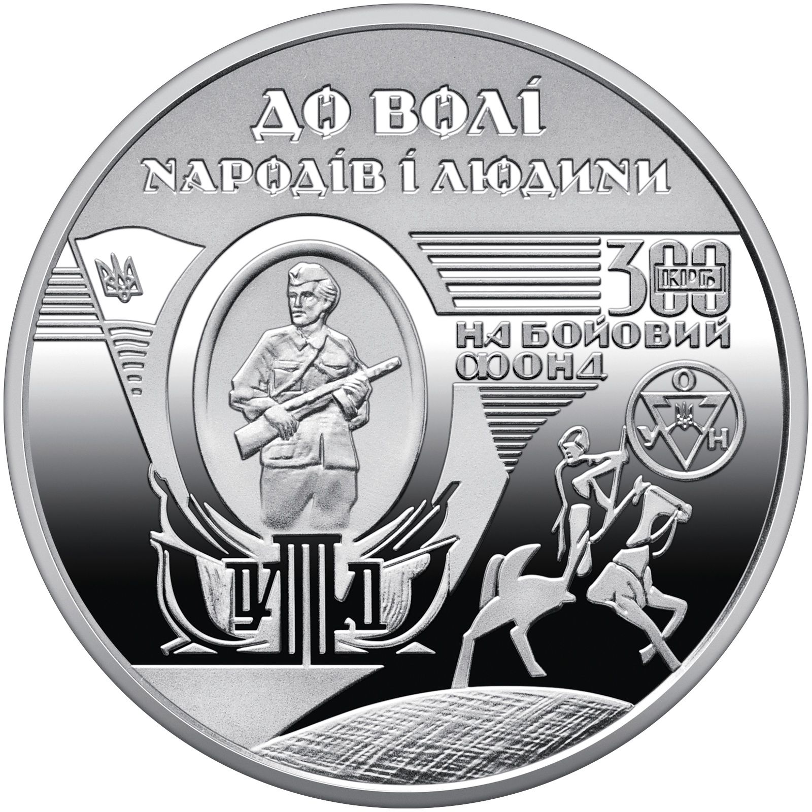 Опис: Композиція, складена з фрагментів гравюр на дереві Хасевича, стилізована під банкноту, схожу за дизайном на бофони (фінансові квитанції повстанців). Композиція включає елементи графічної роботи художника як символ економічної, ідеологічної та моральної сили опору.