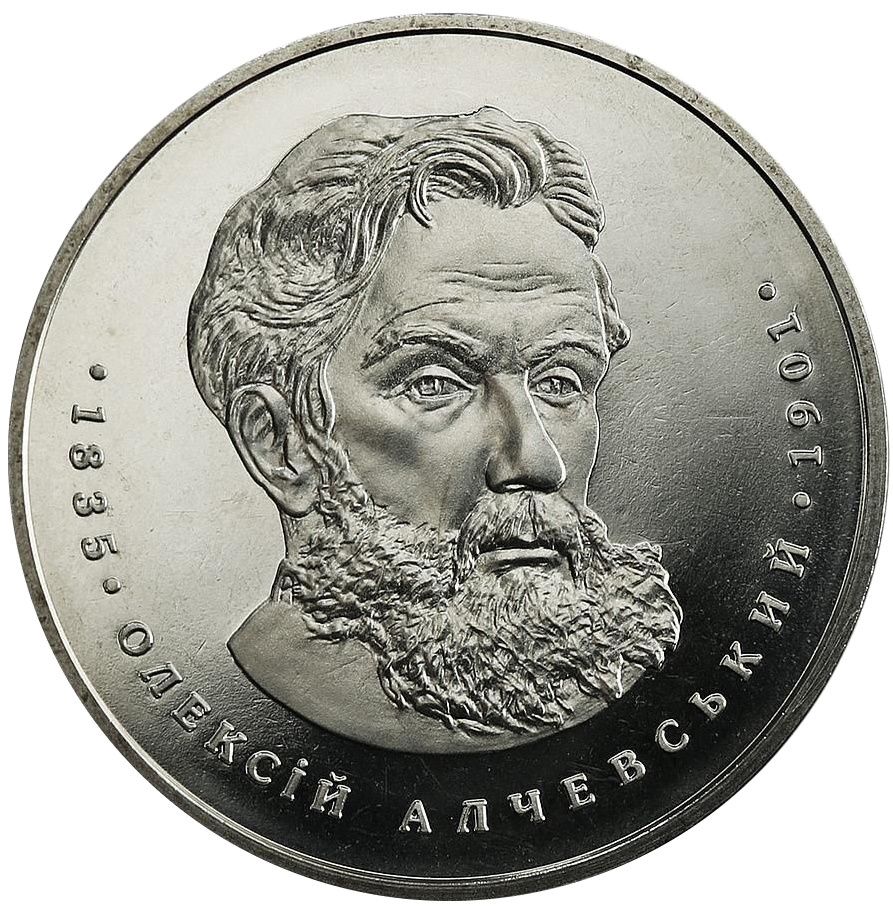 Опис: На монеті зображено портрет Олексія Алчевського, під яким розміщено напівкруглі написи: 1835 — ОЛЕКСІЙ АЛЧЕВСЬКИЙ — 1901.
