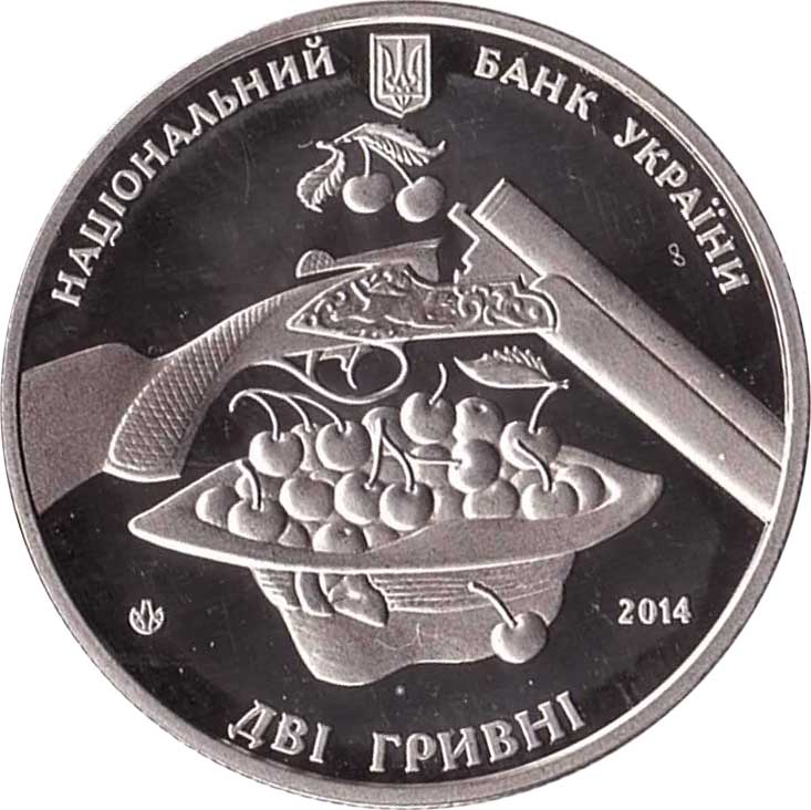 Опис: Зверху розміщено малий герб України з напівкруглим написом «Національний банк України»; у центрі — композиція, що зображує улюблену читачами казку «Вишневі посмішки»: рушницю, заряджену двома вишнями, та капелюх, повний вишень; ліворуч — знак Монетного двору Національного банку України; праворуч — рік випуску монети 2014; знизу — номінал монети ДВІ ГРИВНІ (дві гривні).