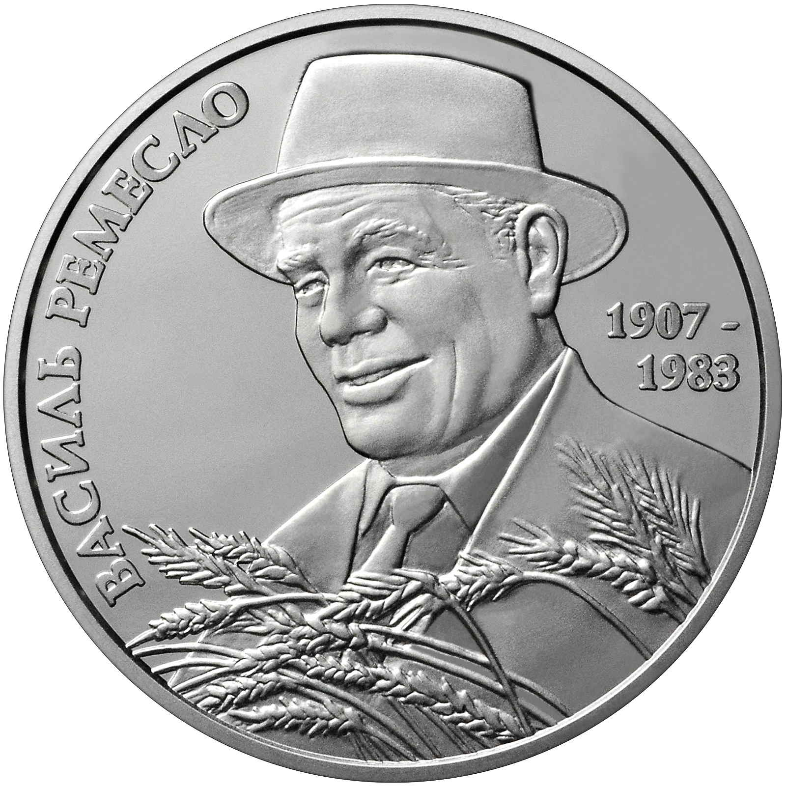 Опис: Портрет Василя Ремесла, прикрашений колосками пшениці.