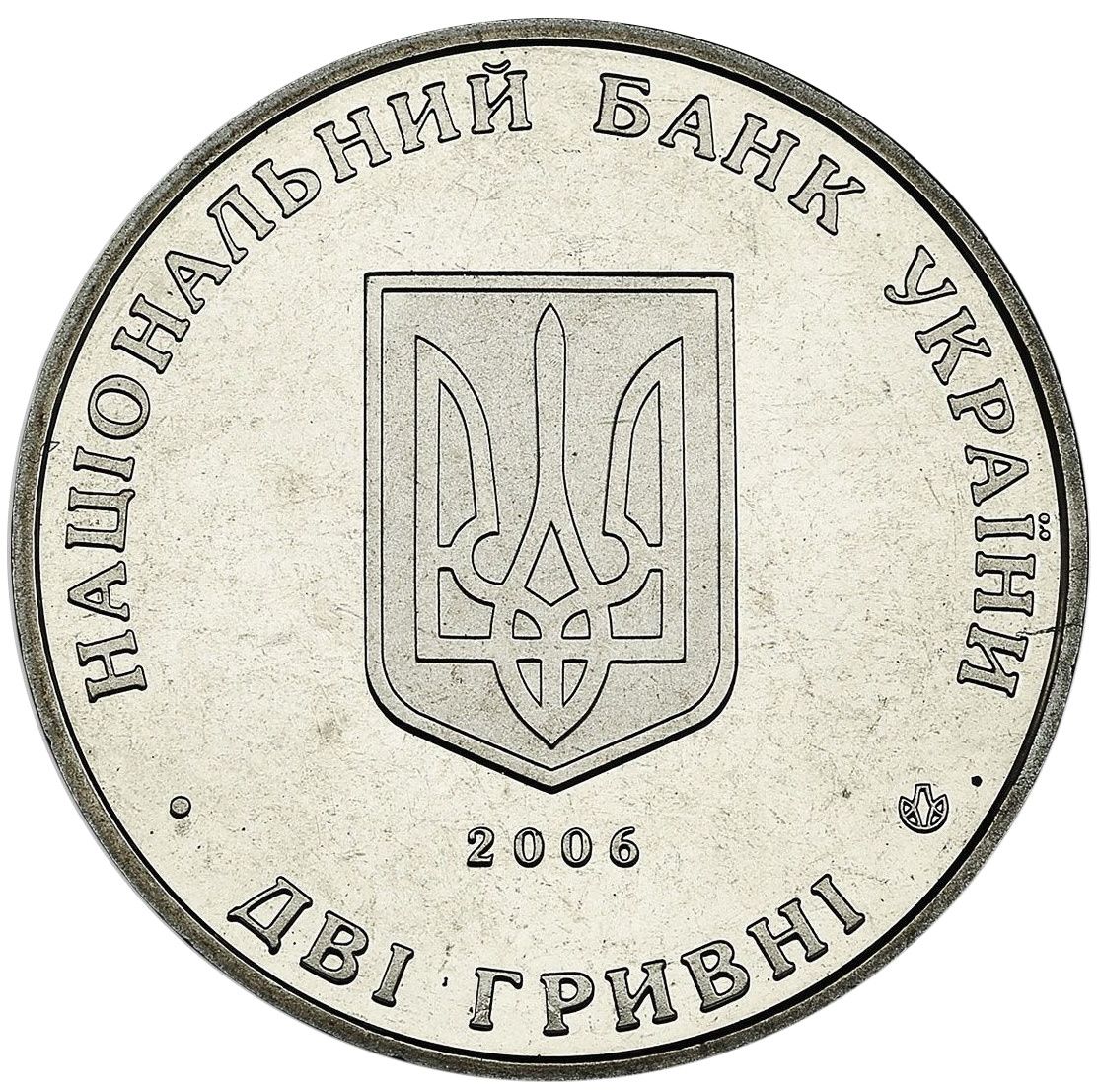 Опис: У центрі розміщено малий герб України, під ним — рік карбування — 2006, а також напівкруглі написи: зверху — НАЦІОНАЛЬНИЙ БАНК УКРАЇНИ (Національний банк України), знизу — ДВІ ГРИВНІ (2 гривні) та логотип Монетного двору Національного банку України.
