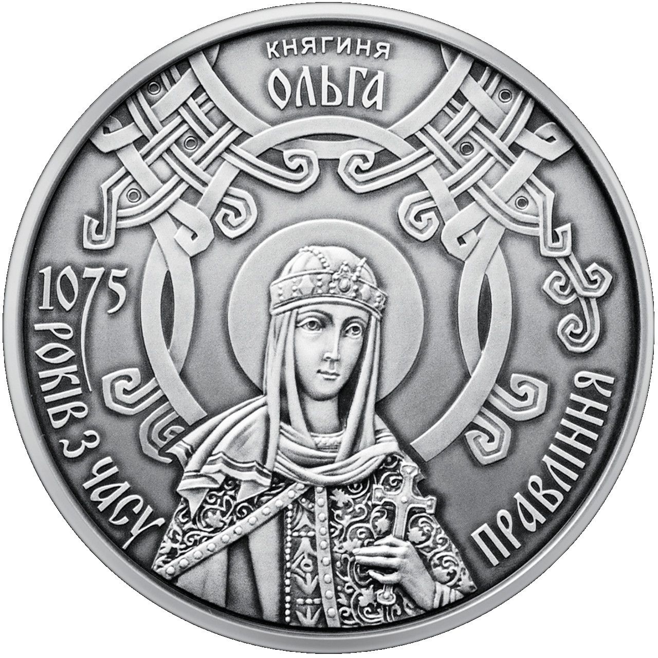 Опис: У колі, виконаному у вигляді декоративного орнаменту Київської Русі, зображена княгиня Ольга. Також є такі написи: КНЯГИНЯ/ ОЛЬГА (княгиня/ Ольга) (вгорі) і 1075 (зліва), під якими розташовані написи РОКІВ З ЧАСУ (років з часу) (напівкруглий) і ПРАВЛІННЯ (правління) (напівкруглий, праворуч).