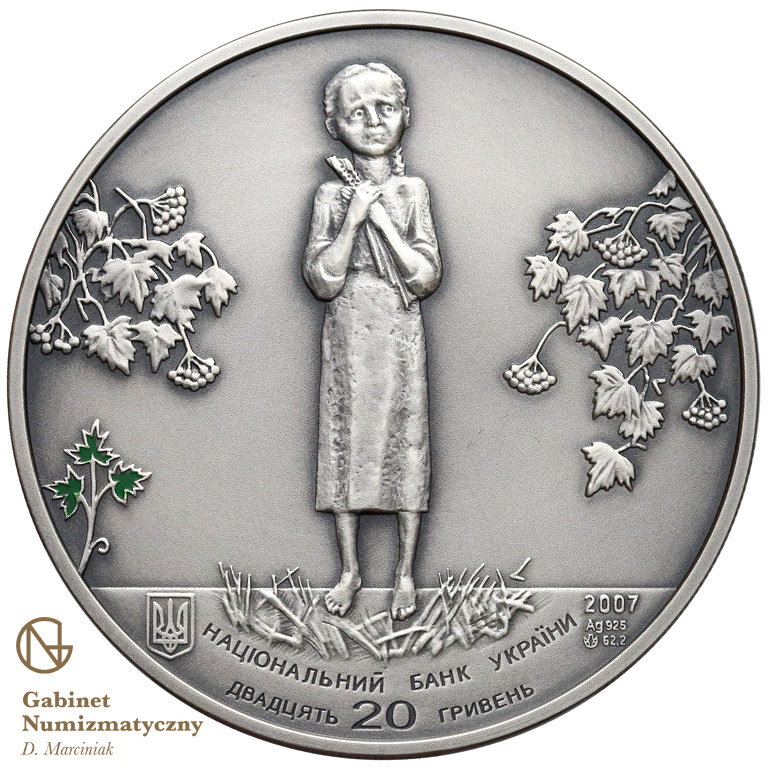 Опис: У центрі зображено дівчину з колоссям у руках, яка стоїть на стерні, по обидва боки від неї — гілки калини. Зліва розміщено Малий герб України, праворуч — рік випуску монети: 2007, а також напівкруглі написи: ДВАДЦЯТЬ 20 ГРИВЕНЬ, позначення металу, його проби — Ag 925, та вага монети в пробі 62,2; на монеті зображено напівкруглий напис – НАЦІОНАЛЬНИЙ БАНК УКРАЇНИ (National Bank of Ukraine) – а також логотип Монетного двору Національного банку України.