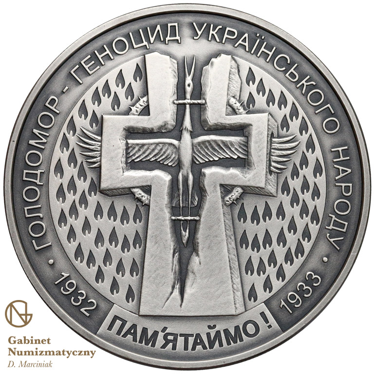 Опис: На тлі свічок зображено хрест із лелекою всередині та напис по колу: ГОЛОДОМОР – ГЕНОЦИД УКРАЇНСЬКОГО НАРОДУ 1932 ПАМ’ЯТАЙМО! 1933 (Голодомор – геноцид українського народу 1932 Пам’ятаймо! 1933).