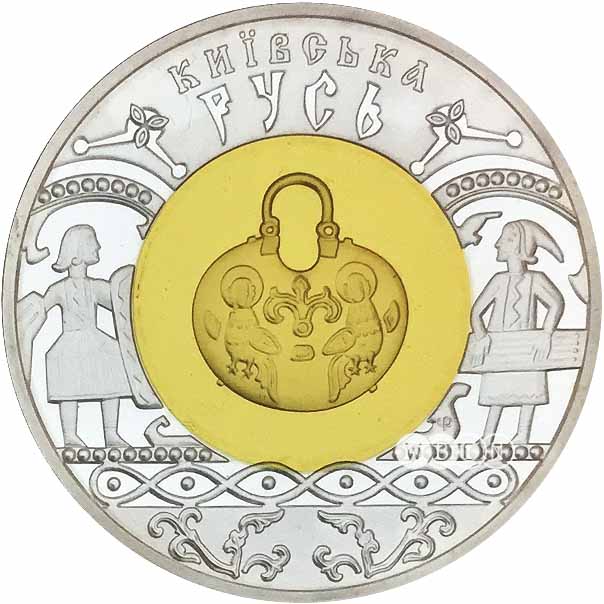 Опис: У центрі — староруська жіноча прикраса; фрагменти київського ритуального браслета та пам'ятний напис на кільці.