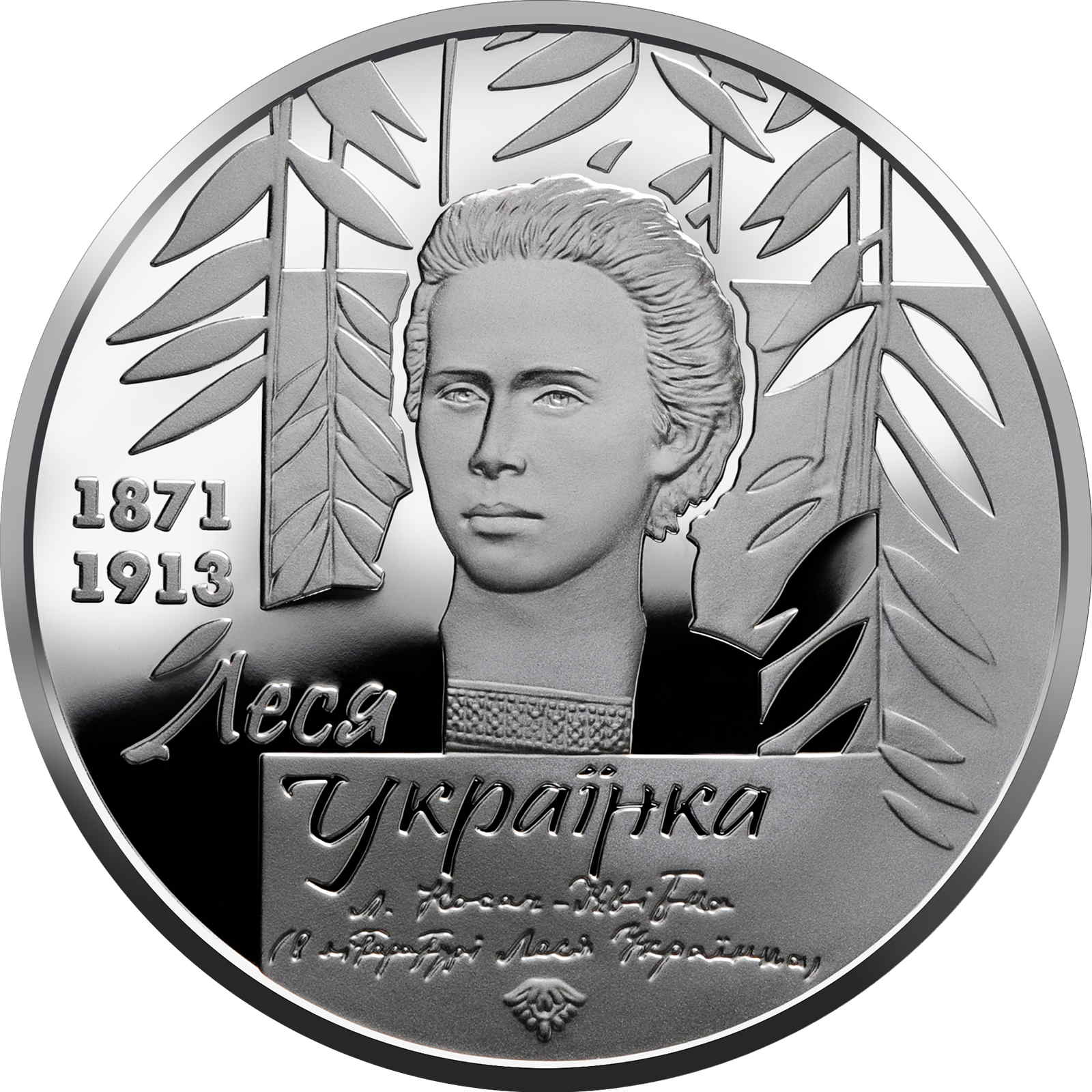 Опис: Зверху розміщено напис «УКРАЇНА», праворуч від якого — малий герб України; є композиція, що символізує яскравий, емоційний і багатий світ поезії Лесі Українки: ліворуч, на гладкому тлі, стилізовані зображення чоловіка і жінки, що нагадують свічки; праворуч — зграя журавлів, над якою вказано номінал монети та рік випуску 20/ГРИВЕНЬ/ 2021 (20/гривень/2021).