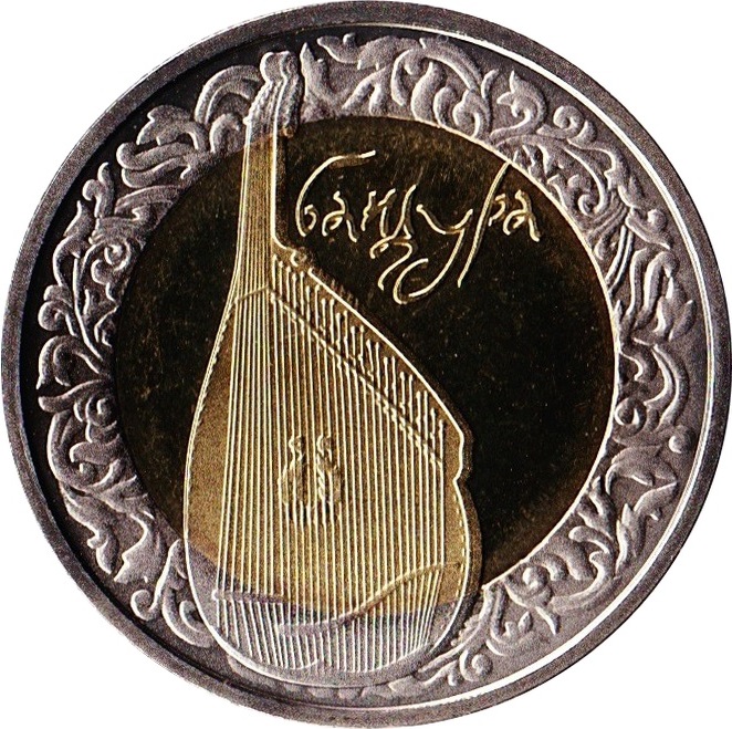 Опис: На монеті зображена бандура, оточена бароковим орнаментом, та стилізований напис БАНДУРА, виконаний у стилі козацького шрифту.