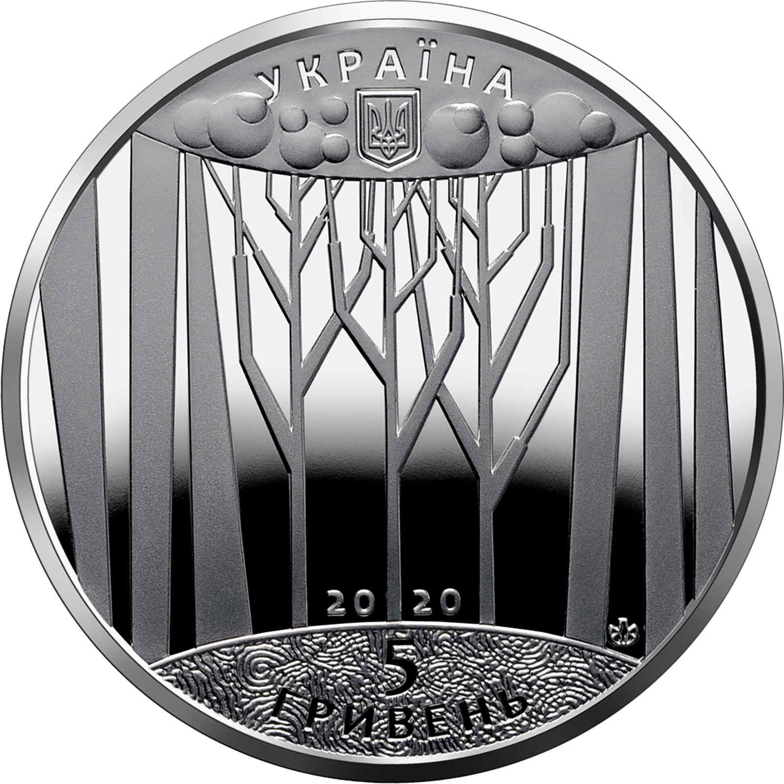 Опис: На монеті зображено малий герб України, над яким розміщено напівкруглий напис «УКРАЇНА»; також є така композиція: стилізовані дерева з плодами, що символізують духовну та матеріальну культуру; праворуч і ліворуч від дерев — вертикальні смуги, що нагадують фасад сучасної будівлі музею; знизу, на гладкому тлі, — рік випуску монети 2020 (відокремлений стовбуром дерева); на тлі стилізованого орнаменту – номінал монети 5/ГРИВЕНЬ (5/гривень); праворуч – знак монетного двору ДП «Банкнотно-монетний двір НБУ».