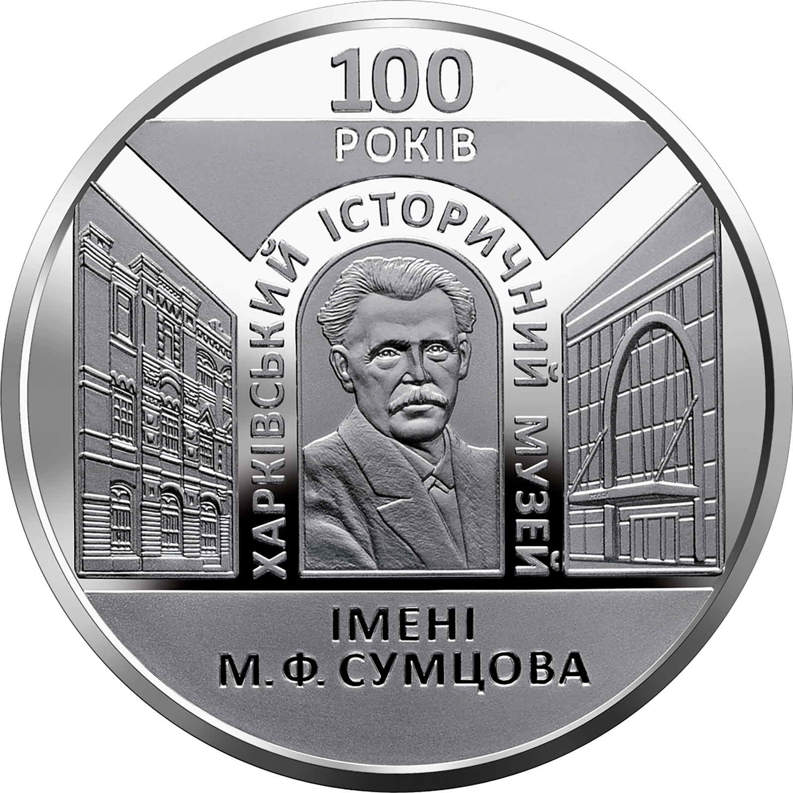 Опис: Є така стилізована композиція: ліворуч і праворуч — фасади музею, що датуються різними історичними періодами; у центрі — декоративна арка, всередині якої — портрет Миколи Сумцова; є такі легенди: 100/РОКІВ (100/років) (вгорі), ХАРКІВСЬКИЙ ІСТОРИЧНИЙ МУЗЕЙ (Харківський історичний музей) (напівкругла, над портретом), ІМЕНІ/ М. Ф. СУМЦОВА (Микола/Сумцов) (внизу, на матовому тлі).