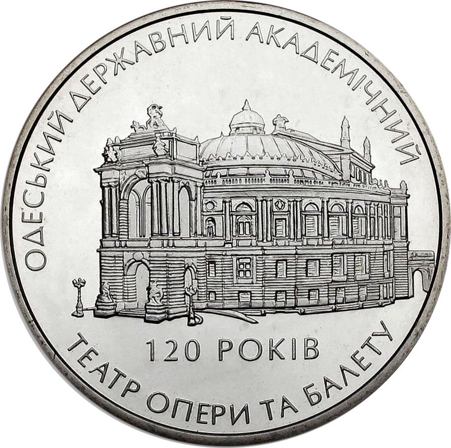 Опис: На монеті зображено будівлю Одеського державного академічного театру опери та балету, під якою розміщено напис: 120 РОКІВ (120 років), а по колу монети — ОДЕСЬКИЙ ДЕРЖАВНИЙ АКАДЕМІЧНИЙ ТЕАТР ОПЕРИ ТА БАЛЕТУ (Одеський державний академічний театр опери та балету).
