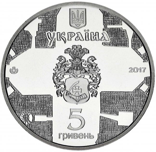 Опис: Зверху зображено малий герб України, під яким розміщено напис «УКРАЇНА»; у центрі, на гладкому тлі хрестоподібного планування церкви, розміщено герб Лизогубів; праворуч — рік випуску 2017; нижче розміщено такі написи: на монеті з нікелевого срібла — «5/ГРИВЕНЬ» (5/гривень). Ліворуч від монети з нікелевого срібла — знак монетного двору ПБН «Банкнотно-монетний двір НБУ».