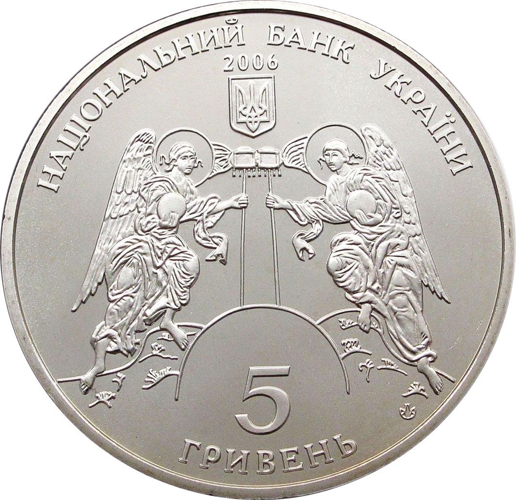 Опис: На монеті зображено композицію М. Врубеля «Ангели з лабарою» з розписів церкви Святого Кирила, зверху — напівкруглий напис «НАЦІОНАЛЬНИЙ БАНК УКРАЇНИ», знизу — рік карбування — 2006, малий герб України, під ним — номінал: 5 / ГРИВЕНЬ (5 гривень).
