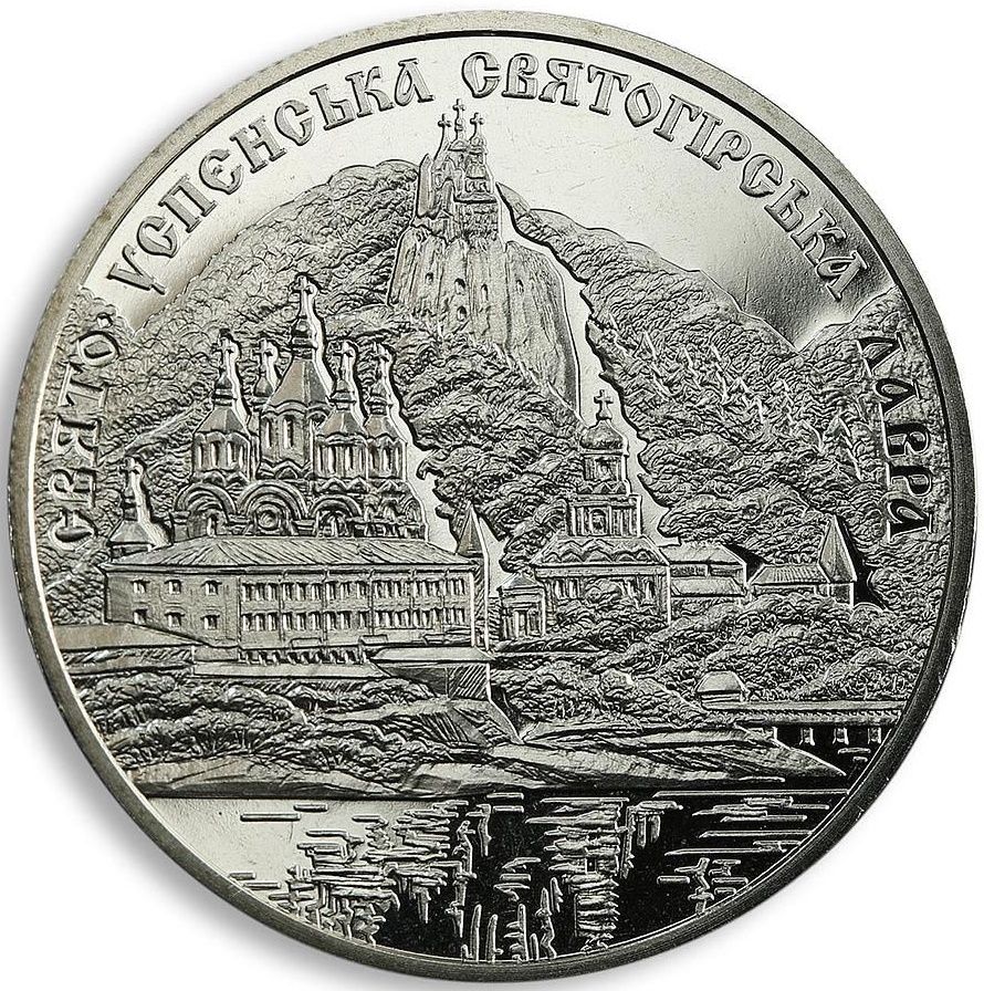 Опис: На монеті зображено старовинний Святогірський Успенський монастир на березі річки, який розташований біля підніжжя крейдяних пагорбів, вкритих густим лісом, а над ним — напівкруглий напис: СВЯТО-УСПЕНСЬКА СВЯТОГІРСЬКА ЛАВРА (Святогірський Успенський монастир).