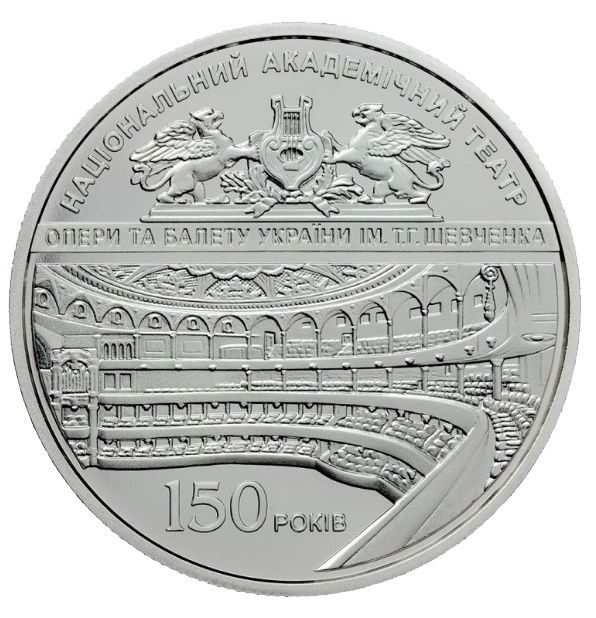 Опис: Вгорі розміщено напис «УКРАЇНА» та роки — 1867 2017 (тамподрук); у центрі на гладкому тлі зображено будівлю театру; внизу розміщено напис — 5/ГРИВЕНЬ (5/гривень). Монета має знак монетного двору НБУ «Банкнотно-монетний двір» (внизу праворуч).