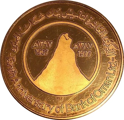 Медаль — Банк Оману (10-та річниця) 1977 – 1977 Об'єднані Арабські Емірати