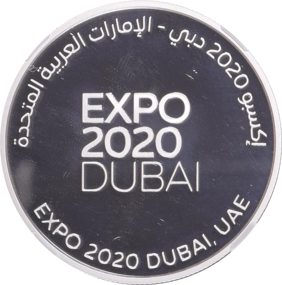 Медаль — Expo 2020 Dubai (офіційний логотип; срібло; англійська мова) 2019 – 2019 Об'єднані Арабські Емірати