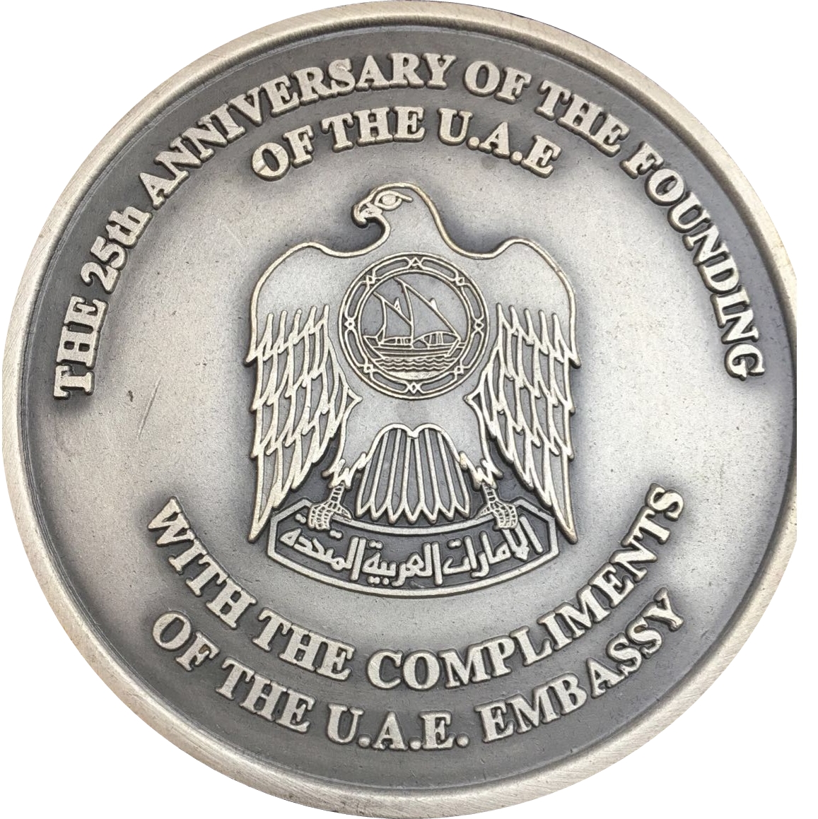 Медаль Посольства ОАЕ — Заєд (25-та річниця Національного дня) 1996 – 1996 Об'єднані Арабські Емірати