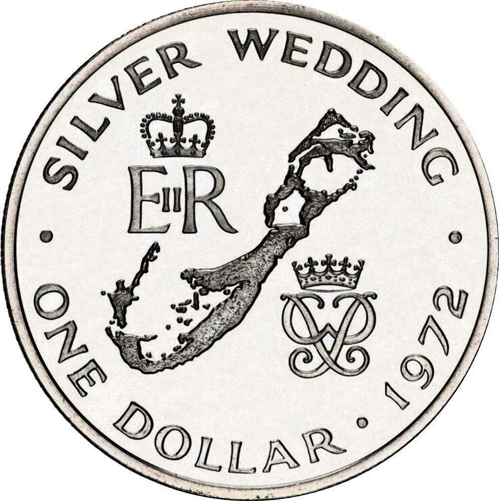 1 долар — Єлизавета II (Срібне весілля; срібна пробна монета) 1972 – 1972 Бермуди