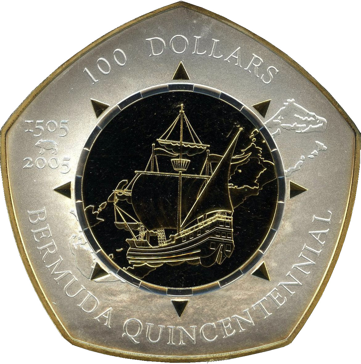 100 доларів — Єлизавета II (500-річчя відкриття) 2005 – 2005 Бермуди