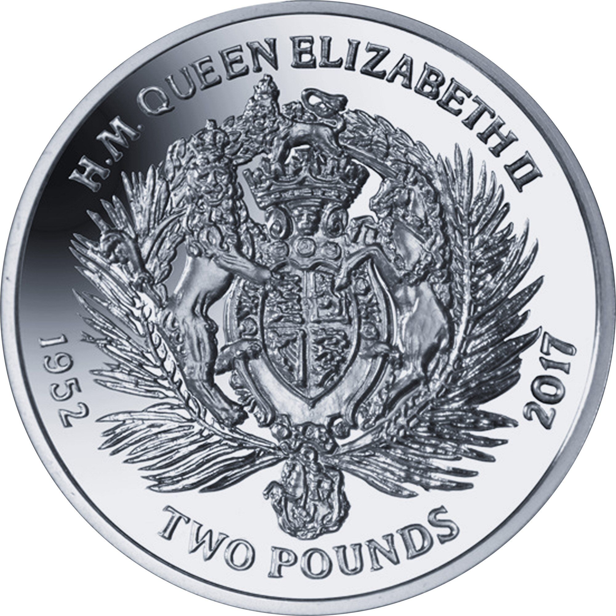 2 фунти — Єлизавета II (герб; срібло) 2017 – 2017 Британська територія в Індійському океані