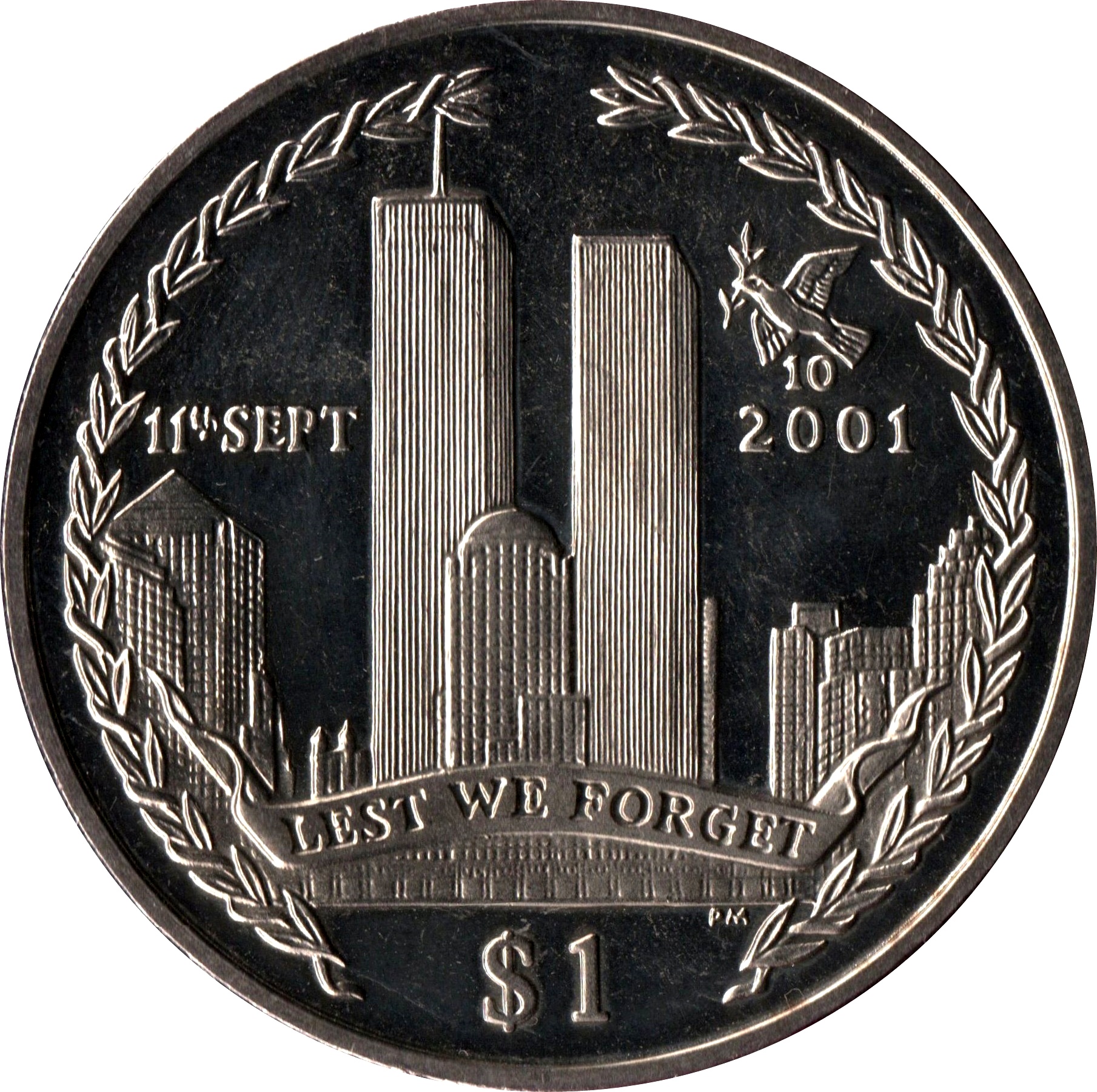 1 долар — Єлизавета II (10-та річниця теракту на вежі-близнюки) 2011 – 2011 Британські Віргінські острови