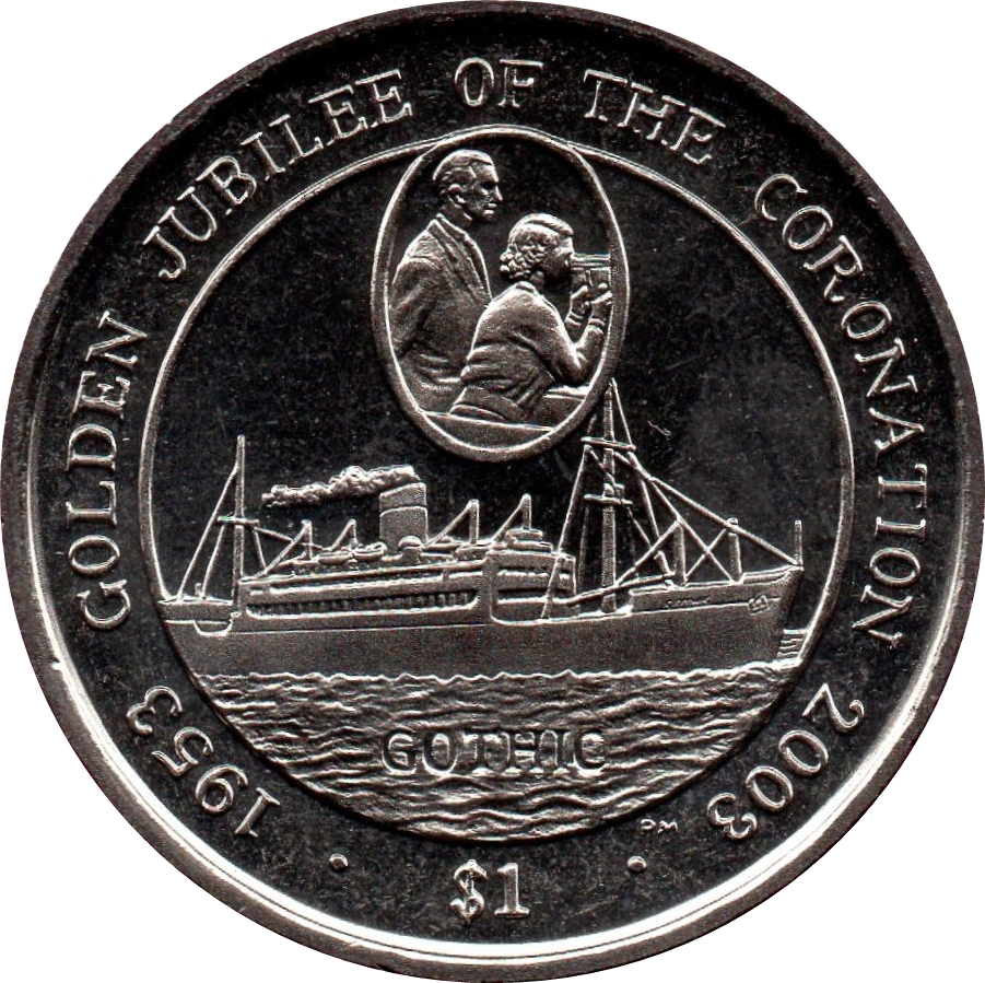 1 долар — Єлизавета II (Золотий ювілей — готичний корабель) 2003 – 2003 Британські Віргінські острови