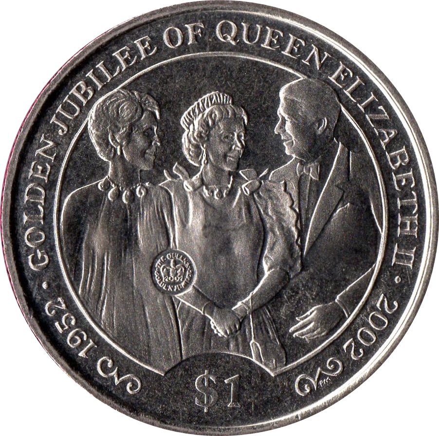 1 долар — Єлизавета II (Золотий ювілей — з Рейганом) 2002 – 2002 Британські Віргінські острови