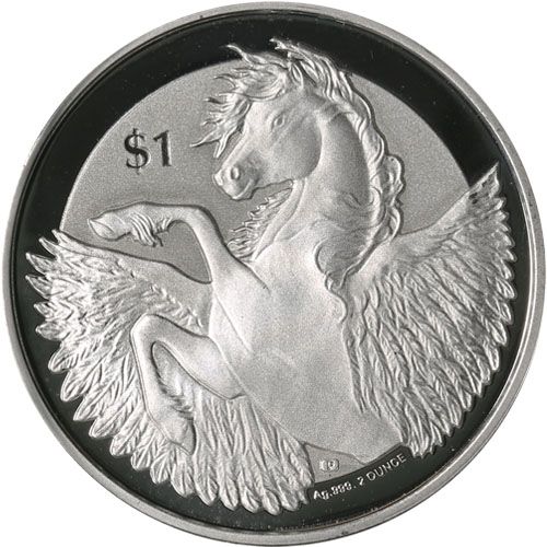 Назва: 1 долар — Єлизавета II (Пегас; Piedfort 2 унції, зворотний бік матовий, срібний зливок)