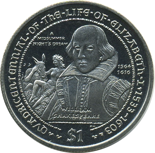 1 долар — Єлизавета II (Вільям Шекспір) 2003 – 2003 Британські Віргінські острови