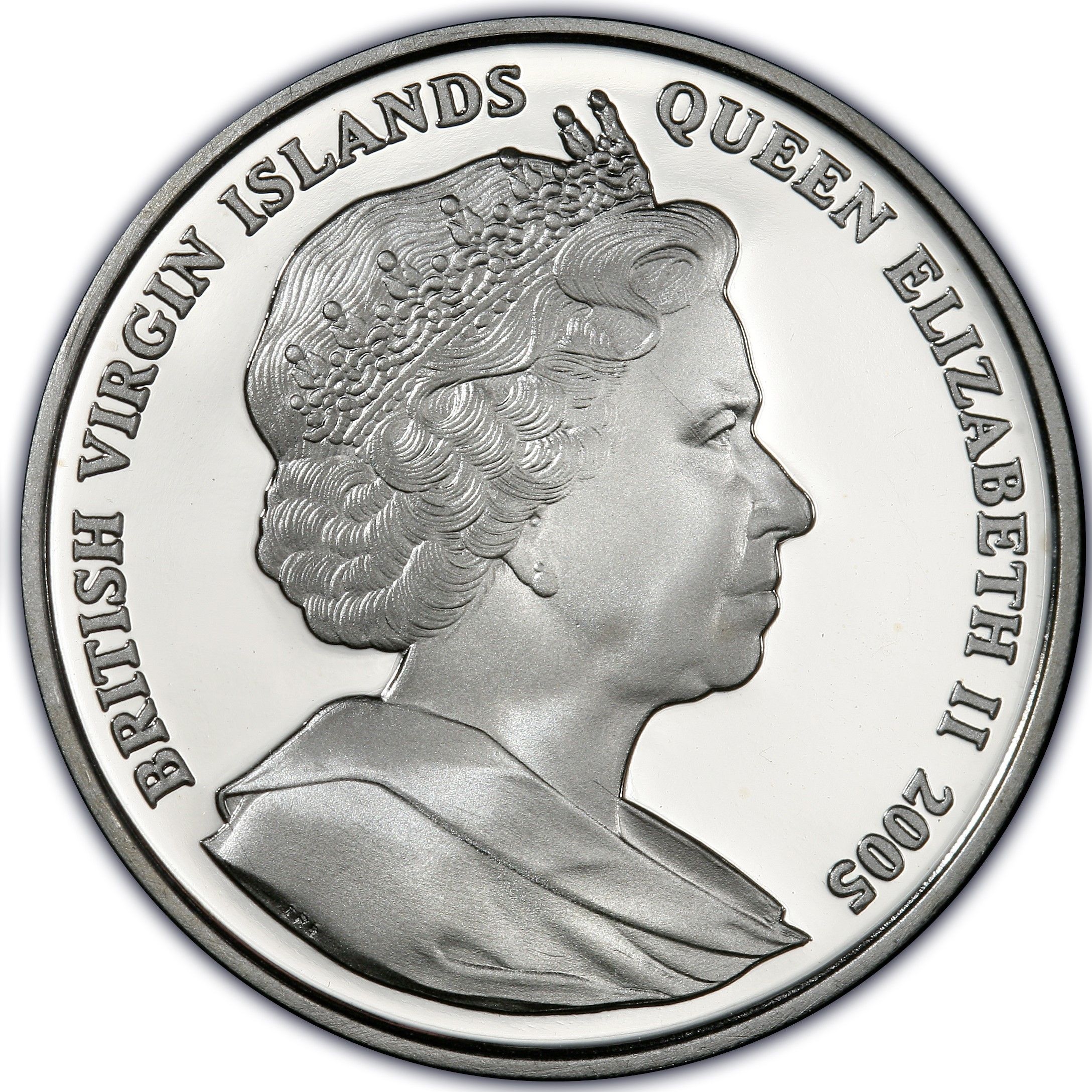 10 доларів — Єлизавета II (дельфін і дитинча) 2005 – 2005 Британські Віргінські острови