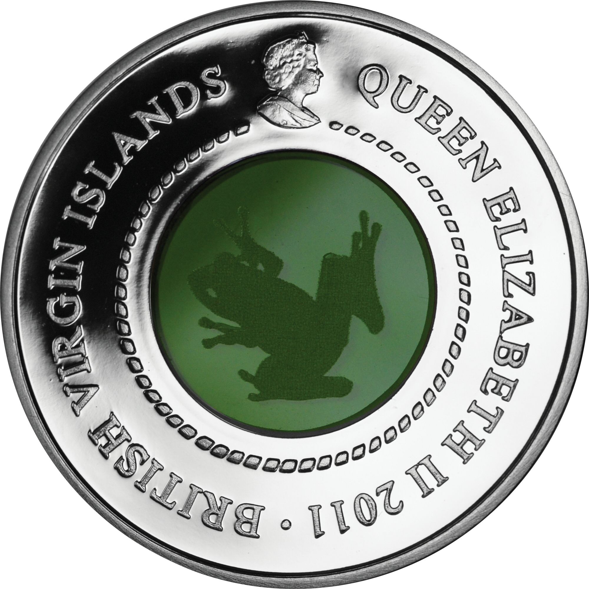 Опис: На аверсі зображено невеликий портрет королеви Єлизавети II над кристалом, а її ім'я та рік випуску вигнуті по правій стороні монети. Напис «BRITISH VIRGIN ISLANDS» вигнутий по лівій стороні монети.