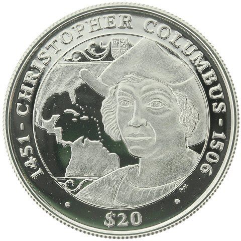 20 доларів — Єлизавета II (Христофор Колумб; біле золото)