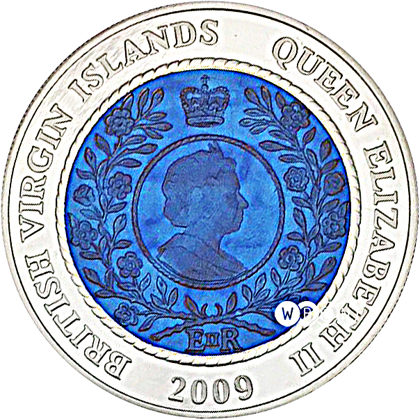 Опис: Портрет королеви з короною, монограмою та квітами у центрі; назва країни та рік випуску на обідку.