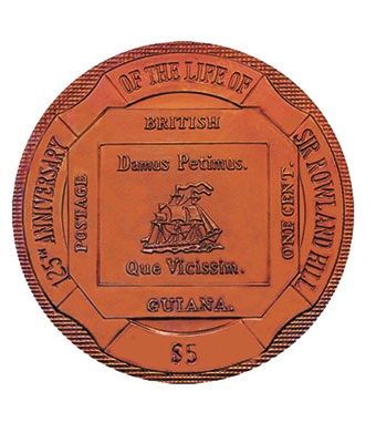 Опис: Британська Гвіана 1 цент Поштова марка «магента» в центрі; пам'ятний девіз та номінальна вартість на кільці.