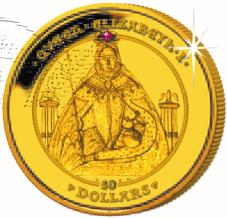 Назва: 50 доларів — Єлизавета II (королева Єлизавета I — між колонами)